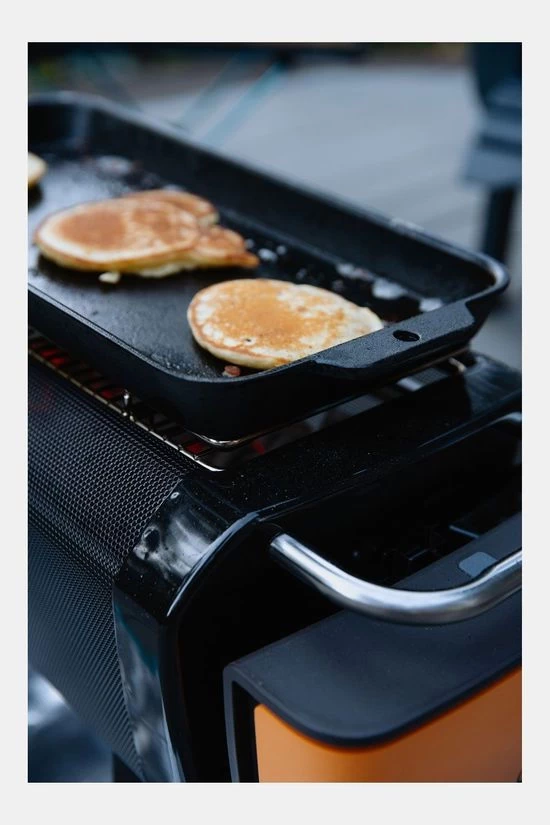 - Deze duurzame gietijzeren Firepit Griddle Bakplaat van BioLite verspreidt en houdt de warmte vast en is ontworpen om perfect op je BioLite FirePit te passen.